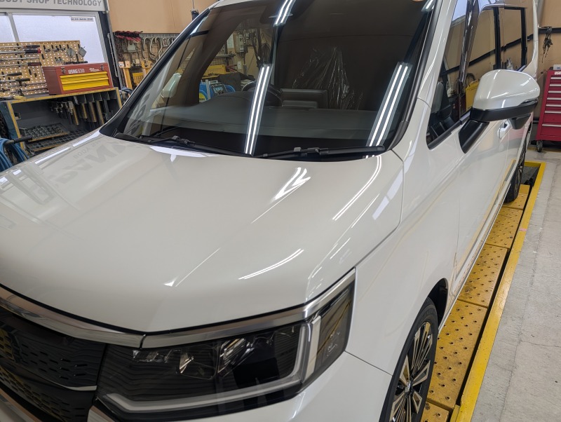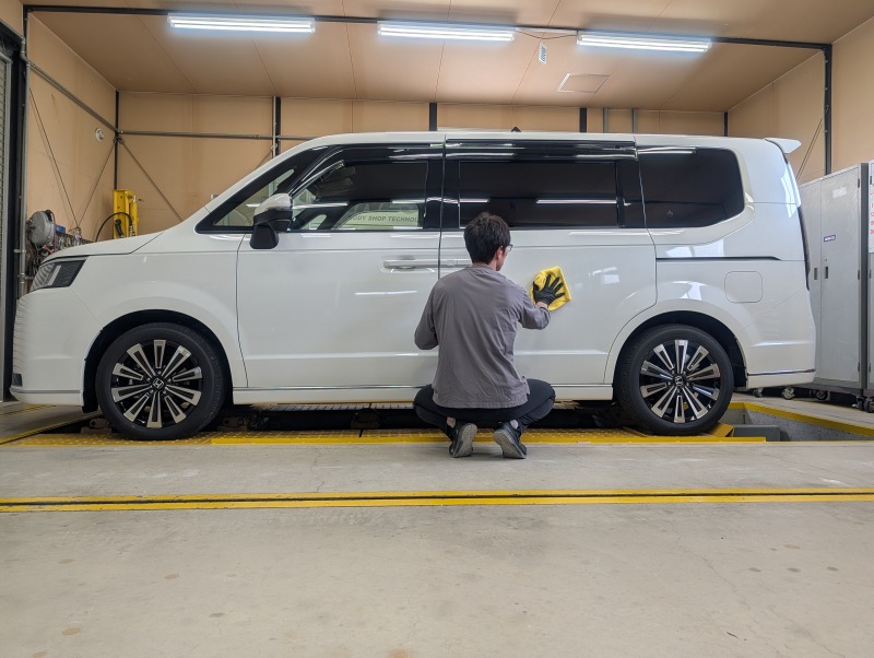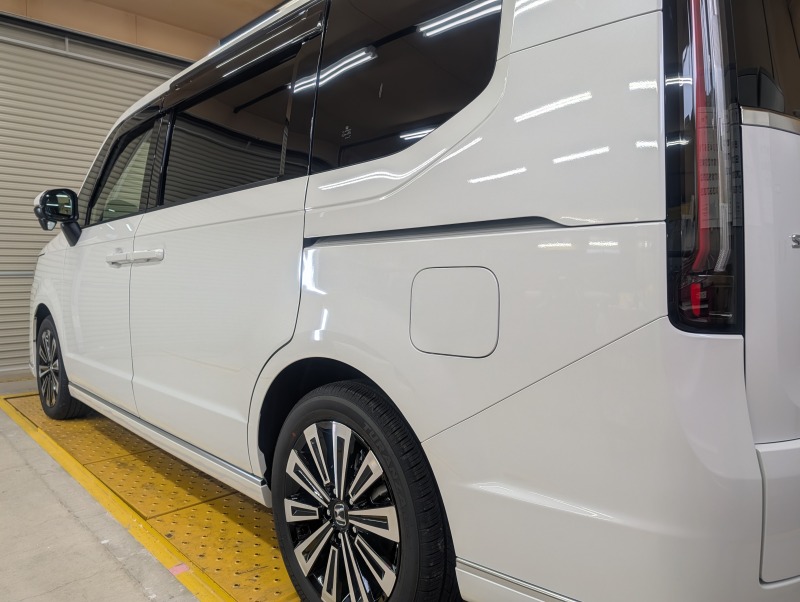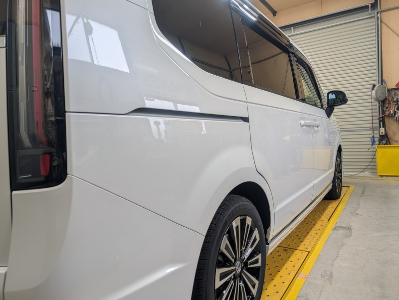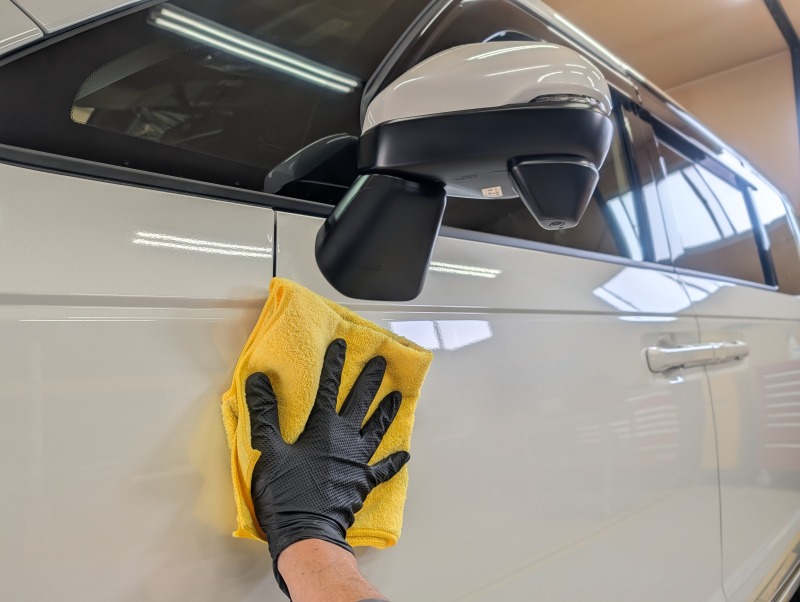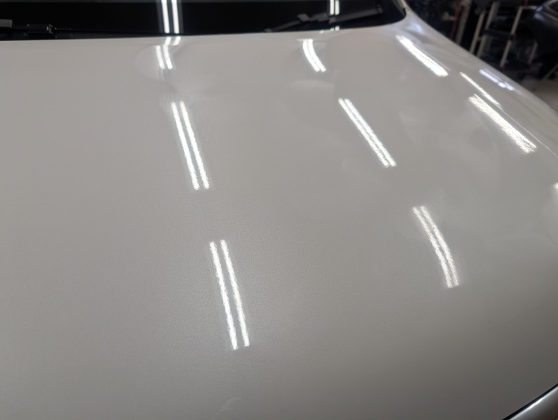 白系だと分かりにくいですが、コーティング剤を施工することで塗装面に深みと艶が出ます。