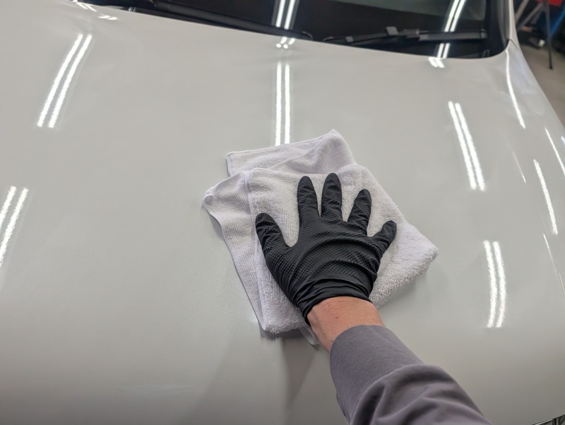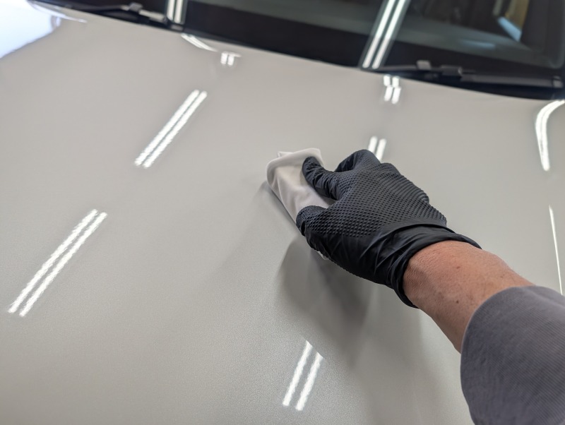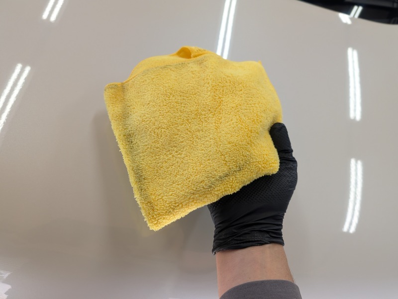 コーティング剤を塗布してから少し時間を置いて拭き取ります。