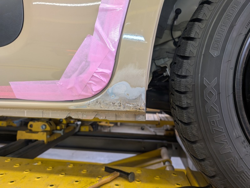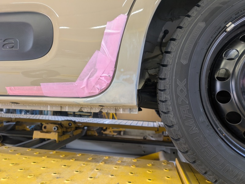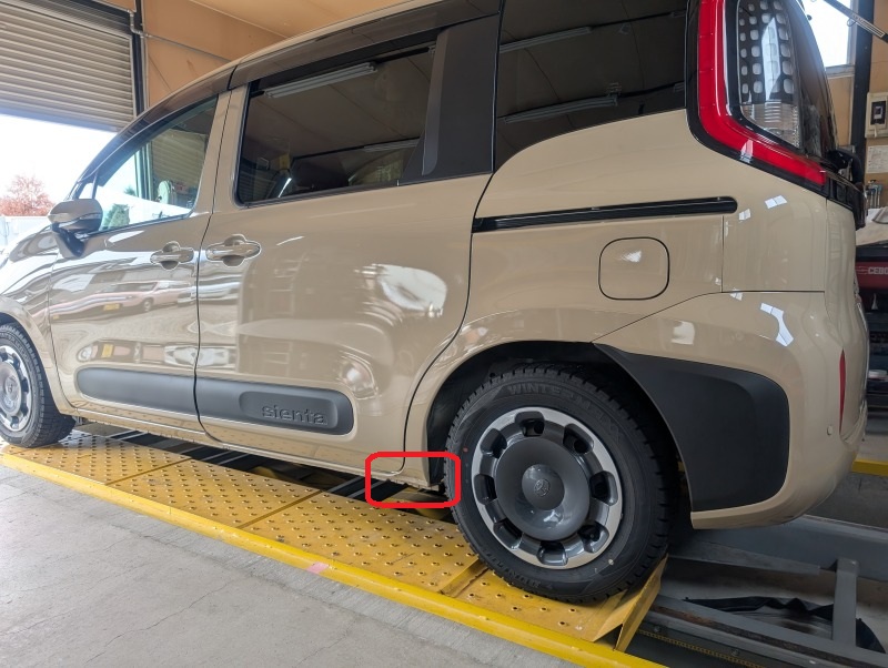 TOYOTAシエンタの左タイヤハウス下側の凹みの修理です。