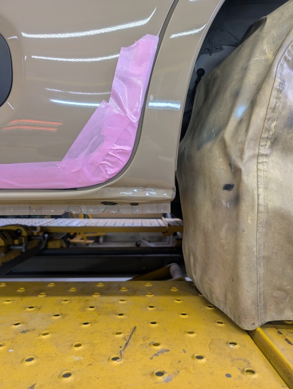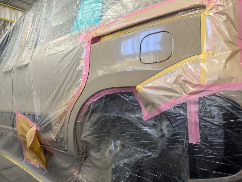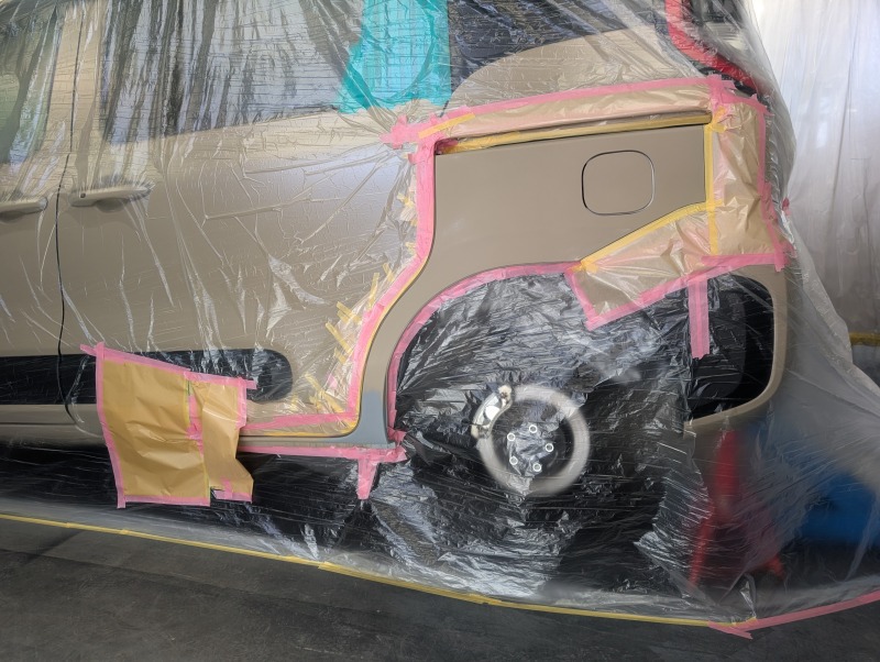 同じ色に完璧に再現出来ることは無いので、通常隣接するパネルにボカシ塗装を行います。