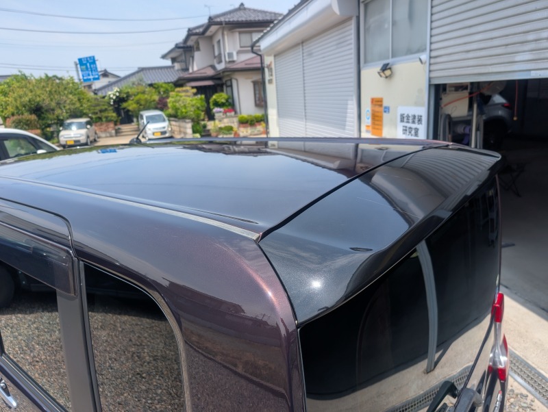 DAIHATSUタントの屋根の塗装が経年劣化により剥がれてきたので修理塗装をさせて頂きました。